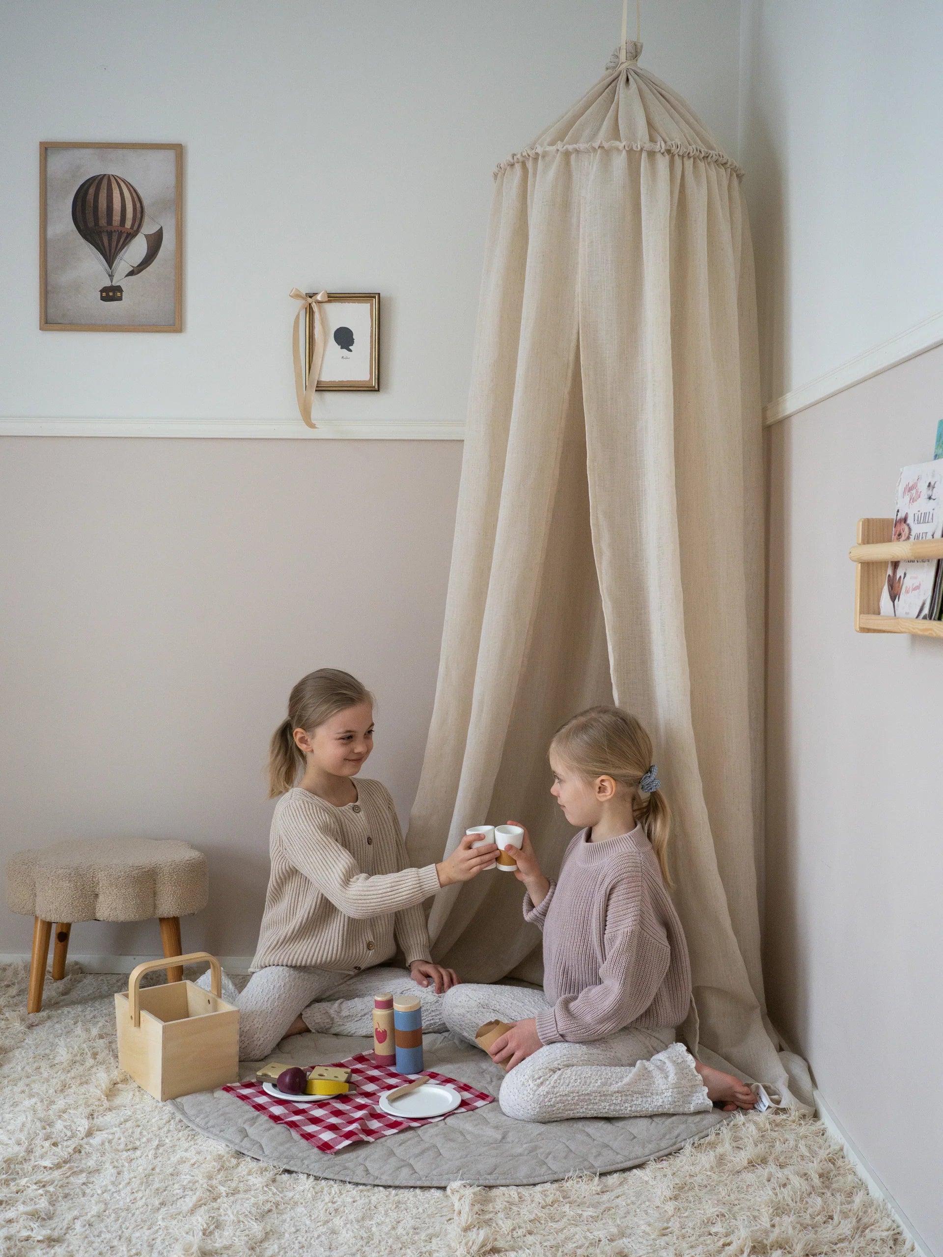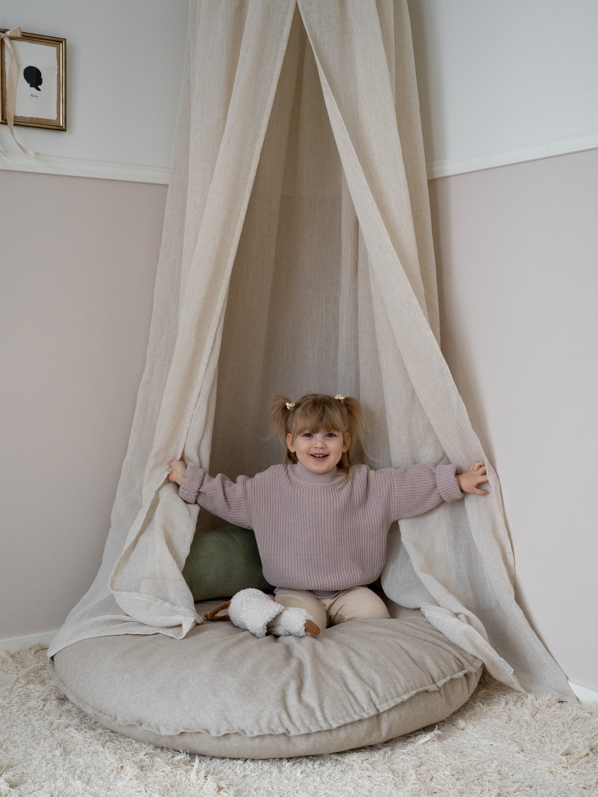 Combineer LUMO met het LEMPI vloerkussen voor een veilig en geborgen plekje om te lezen, spelen of even een dutje te doen. Ook boven een wieg of kinderbed zorgt LUMO voor een kalme, beschermende sfeer en maakt het van elke slaapplek een fijne cocon.