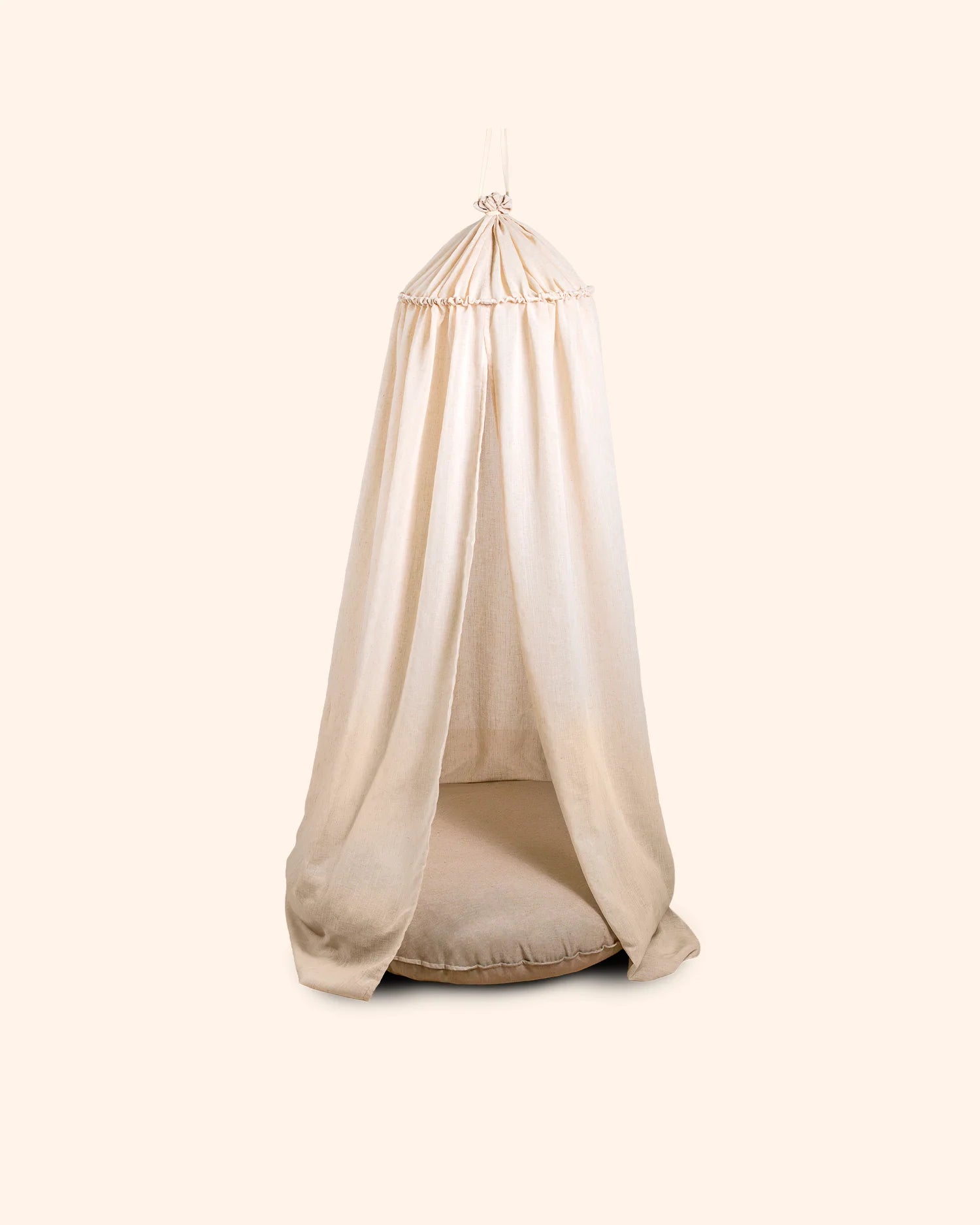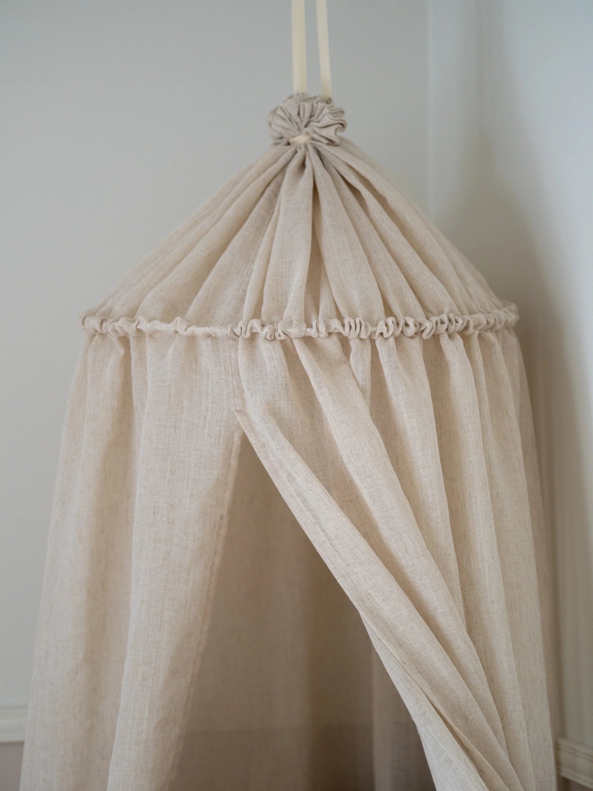 De LUMO play canopy is een licht, zacht en veelzijdig doek dat als een sfeervol detail aan het plafond van de kinderkamer hangt. Dankzij de natuurlijke, rustige tinten past LUMO moeiteloos in elk interieur en creëert het een knus hoekje om tot rust te komen.